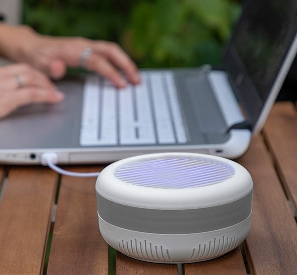 Una lampada antizanzare ad aspirazione altamente efficace per rimuovere gli insetti fastidiosi in modo naturale (ecologico) senza odori sgradevoli o prodotti chimici o tossici che inquinano l'ambiente. Dispone di 4 LED UV (360-400 nm) che attirano le zanzare e di una ventola interna che le risucchia nel serbatoio interno dove vengono intrappolate e uccise. Grazie al suo innovativo design compatto e portatile, può essere posizionato facilmente in diverse posizioni e può essere trasportato ovunque senza problemi. Include un supporto adesivo per attaccarlo al muro se vuoi risparmiare spazio. Viene utilizzato principalmente all'interno, ma può essere utilizzato anche all'esterno. Funziona utilizzando una connessione USB, quindi il suo cavo USB (incluso) può essere collegato a una presa di corrente (con un adattatore USB, non incluso), a un computer portatile o un power bank per l'uso ovunque. Per una maggiore comodità, il cavo si avvolge all'interno della base del dispositivo. Per pulire è sufficiente aprire il serbatoio e pulirlo con una spazzola o un panno umido.